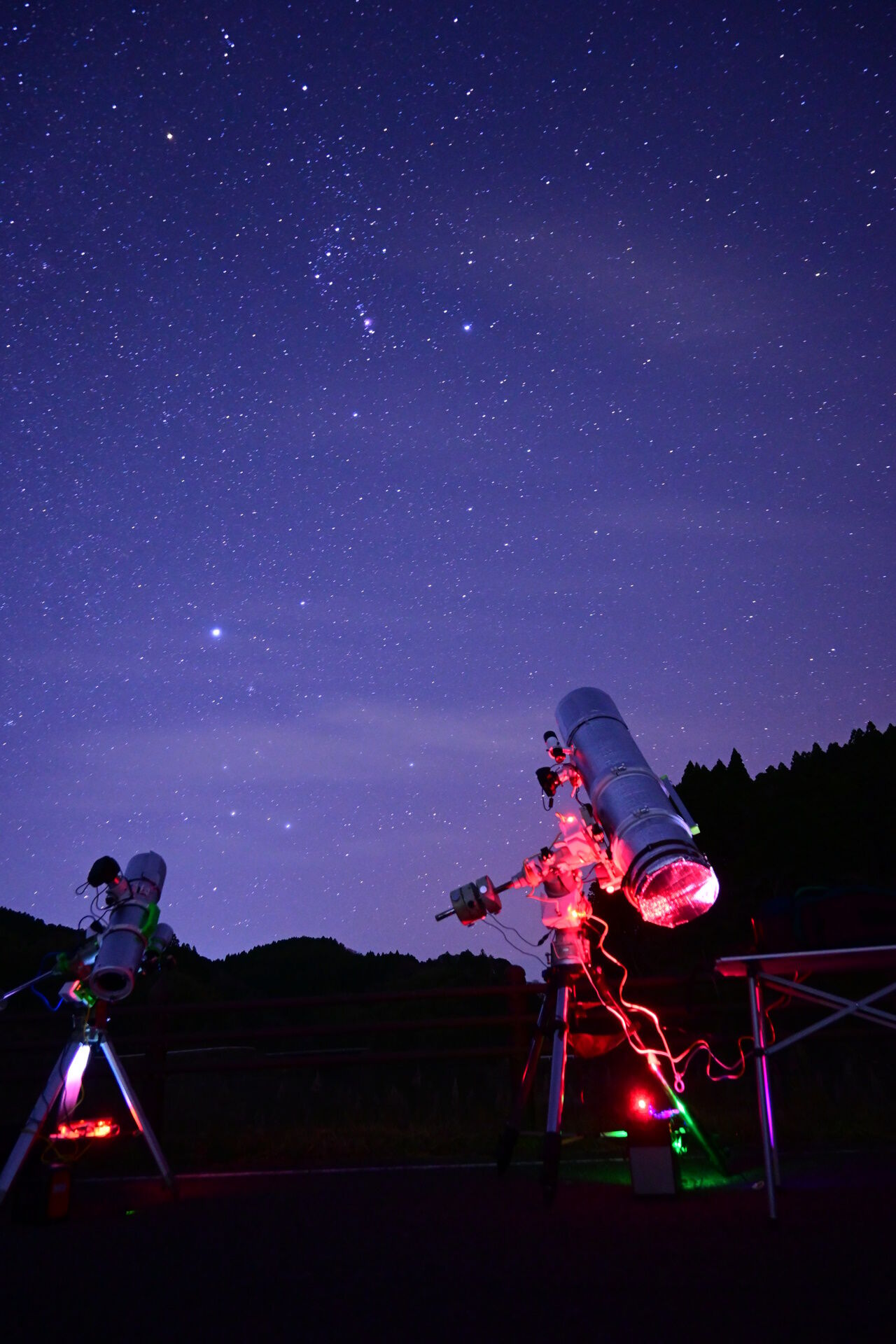 あれよあれよという間にこの状態orz...上の写真で望遠鏡がどちらもオリオンの方を向いていますが、すぐに雲に隠れてしまってこのとき撮ったフレームは全部ボツです(^^;