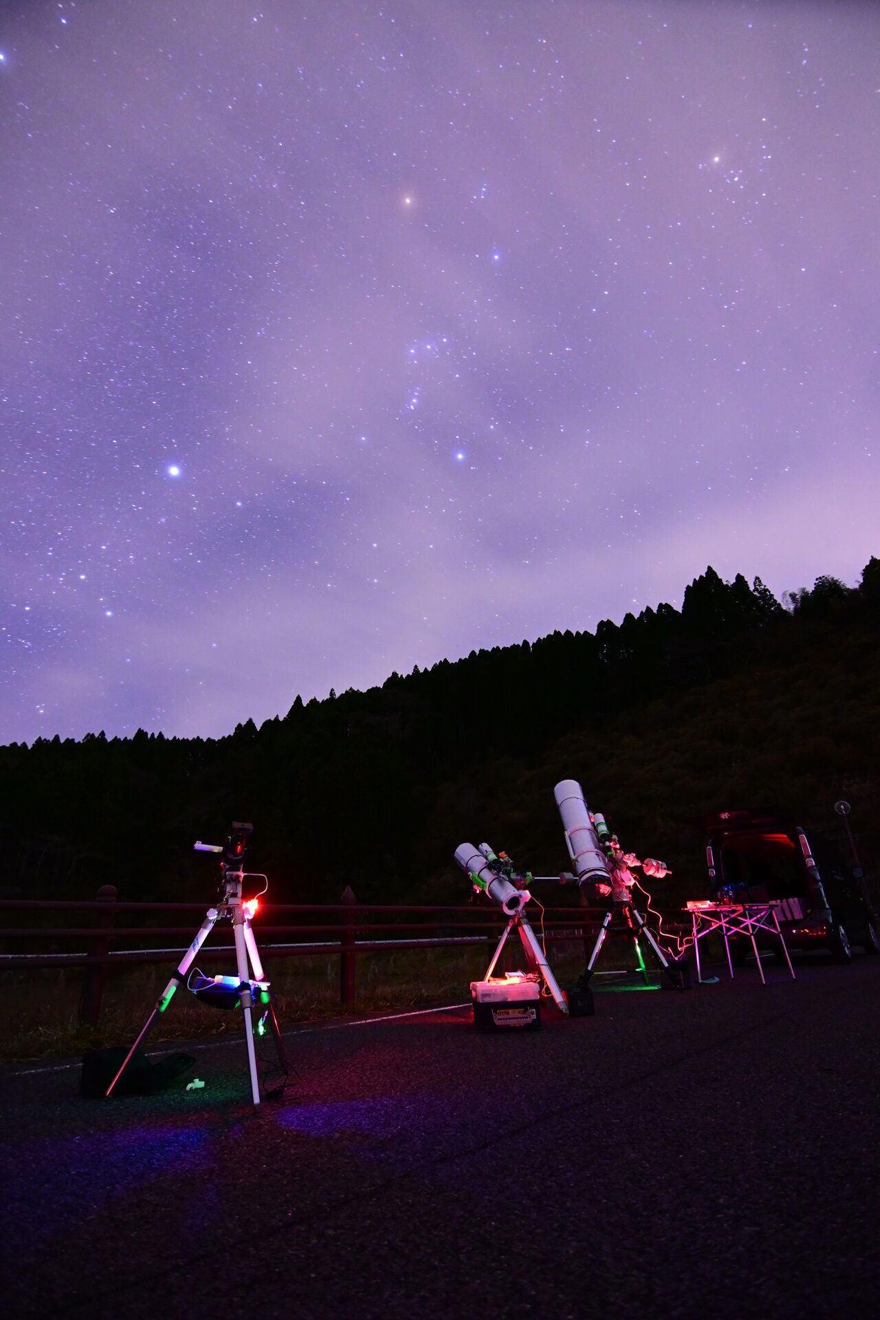 18時頃到着すると、すでに多くの同業者の方が望遠鏡を設置していました。お話してみると以前に同じ場所でお会いした方で、この場所にはよくいらしているとのこと。