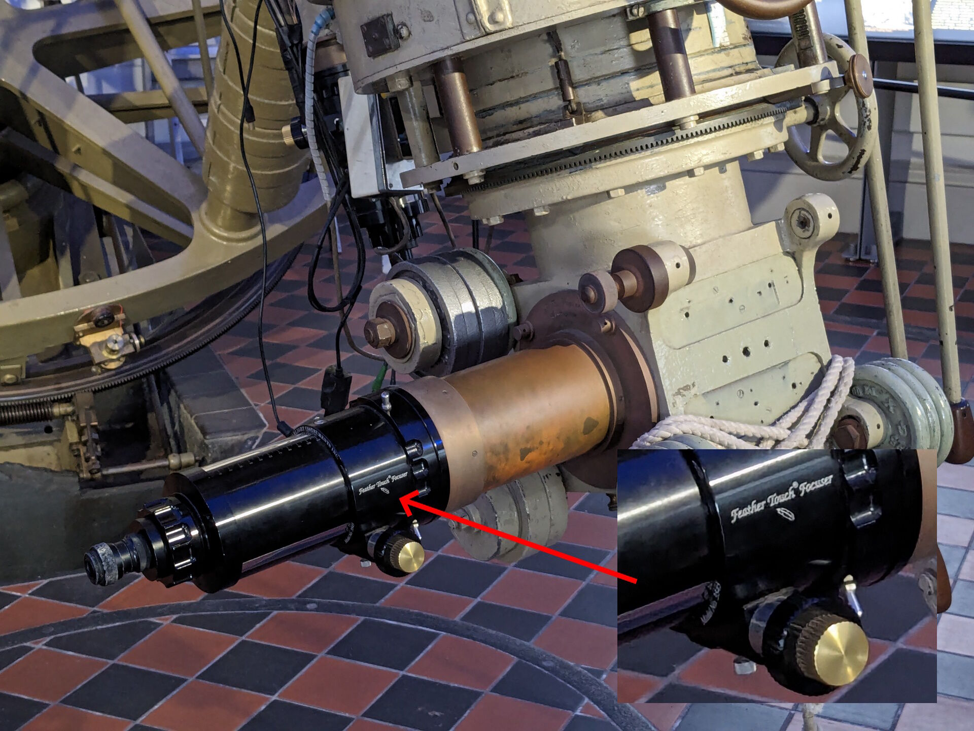 こんなでかい望遠鏡ですが、接眼部はおなじみのフェザータッチフォーカサー。