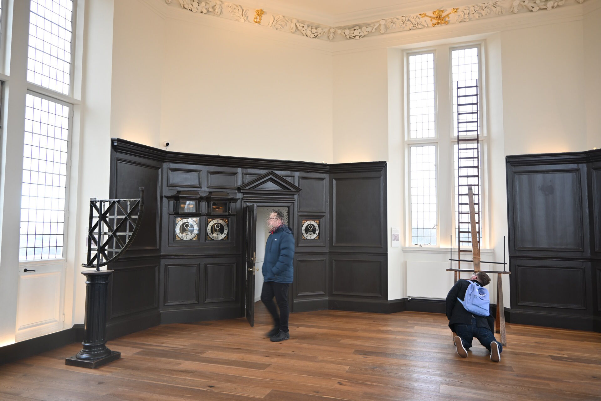 この観測室の完成は1676年。窓から望遠鏡や四分儀などで星の位置を観測しますが、その中で目につくのがコレ。当時最も精度が高かった時計です。星の位置の測定は、何時にどこをその星が通過したか、の時間が大事。前回のブログにも書きましたが、ハレーは時間が不正確で、せっかく観測した星のデータが精度が低くて使えませんでした。