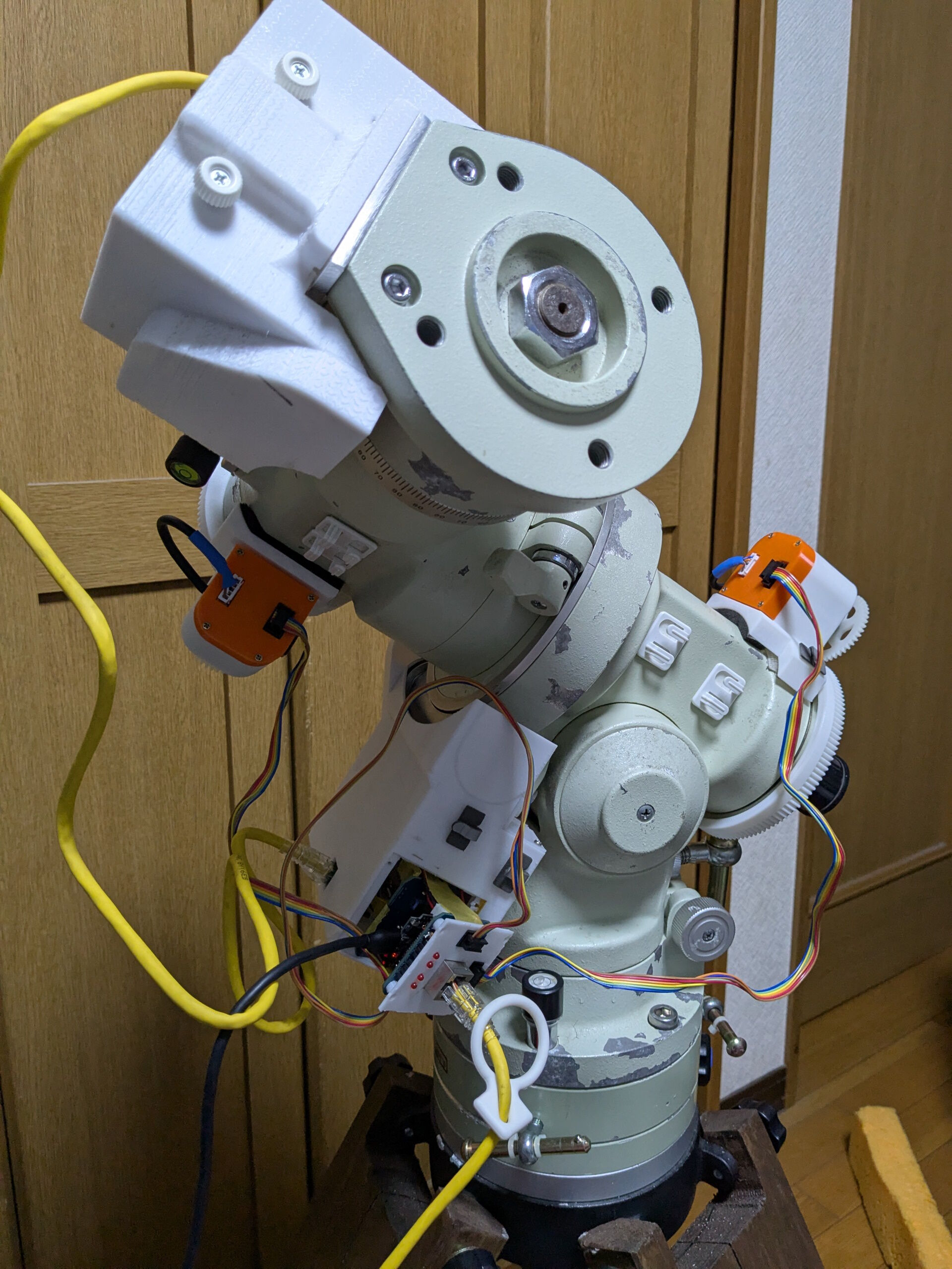 仕方がないので、赤道儀側の断線や接触不良を目視で確認しましたがそれらしいところは見当たらず、とりあえずコネクタが緩んだりしないように、テープで止める処理だけしておきました。