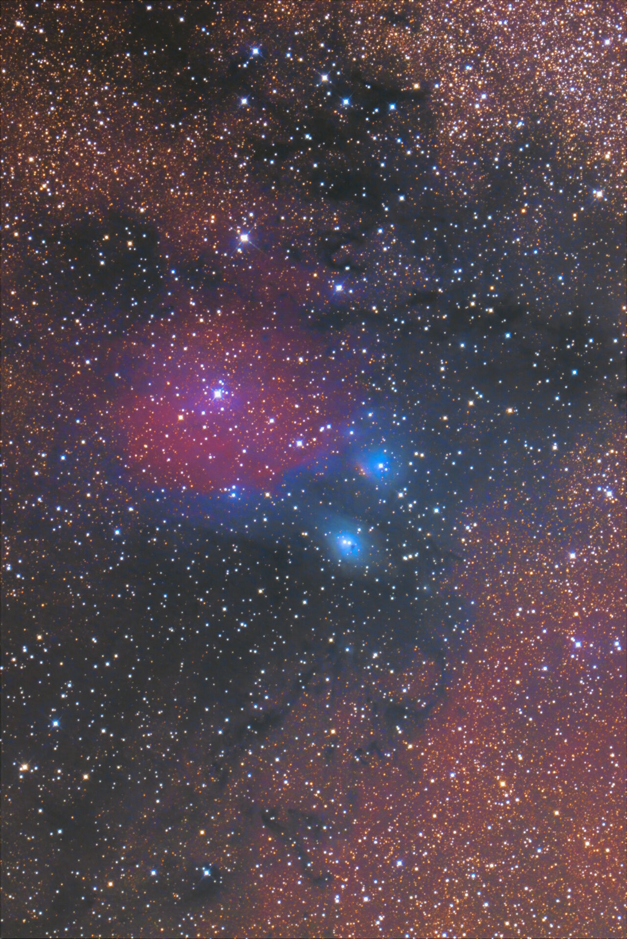 続いて、NGC6589, NGC6590, Sh2-37。いわゆるバンビの首飾りです。機材は同じで、風が止んでいるので露出を伸ばして2分x35枚