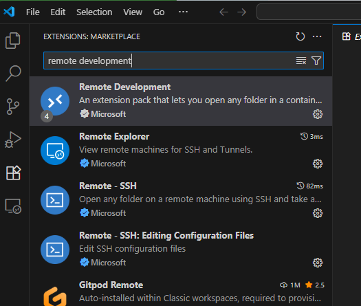「remote development」で検索して最初に出てきたのを インストールします。