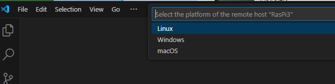 接続を開始すると、新しいVSCodeのウインドウが開いて接続先のOSの選択が出てきますので、Linuxを選びます。
