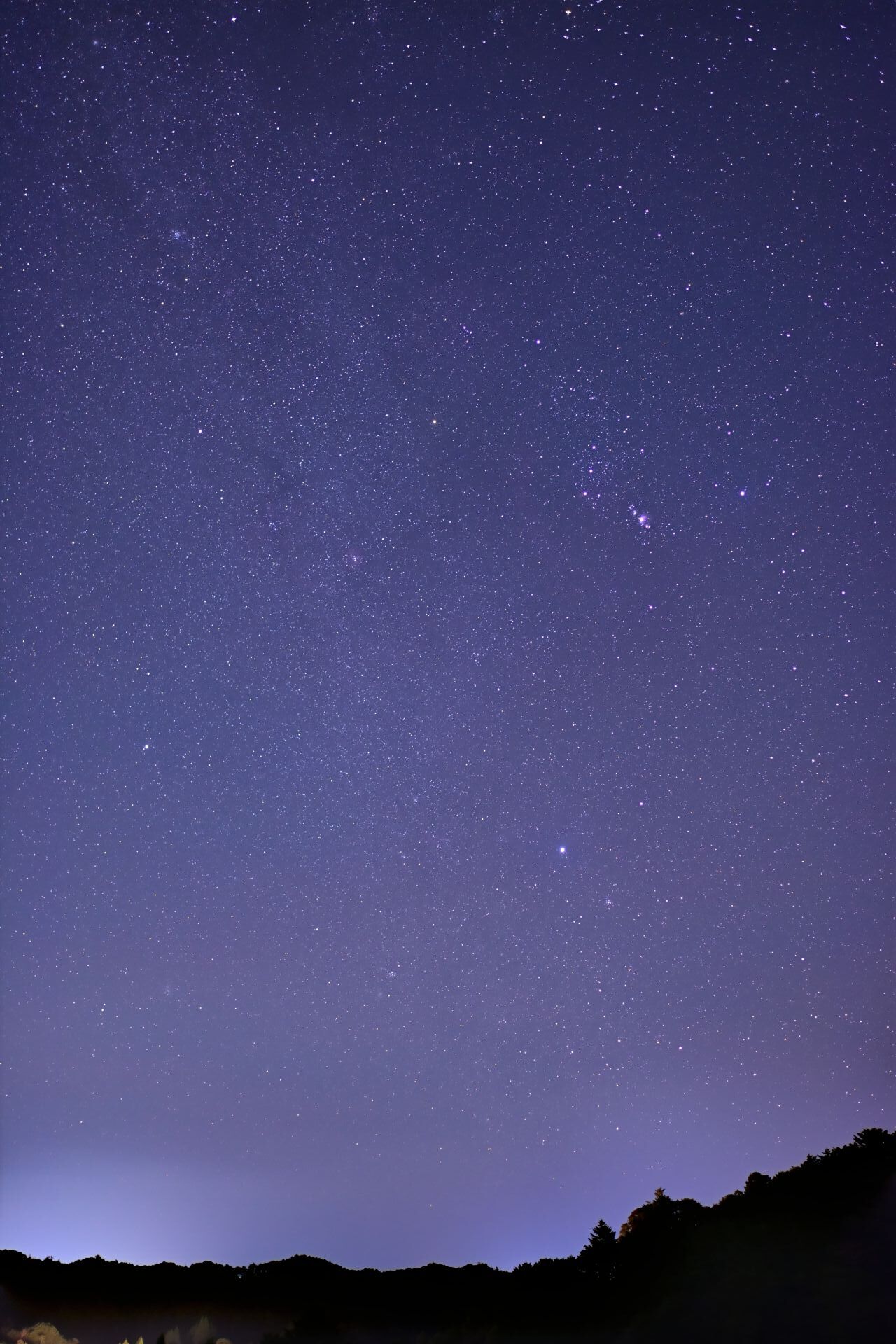 夜半が近づくと空もだいぶ暗くなって、冬の天の川も見えて割と良い条件。左下の被りは勝浦市の街明かりでしょうかね。