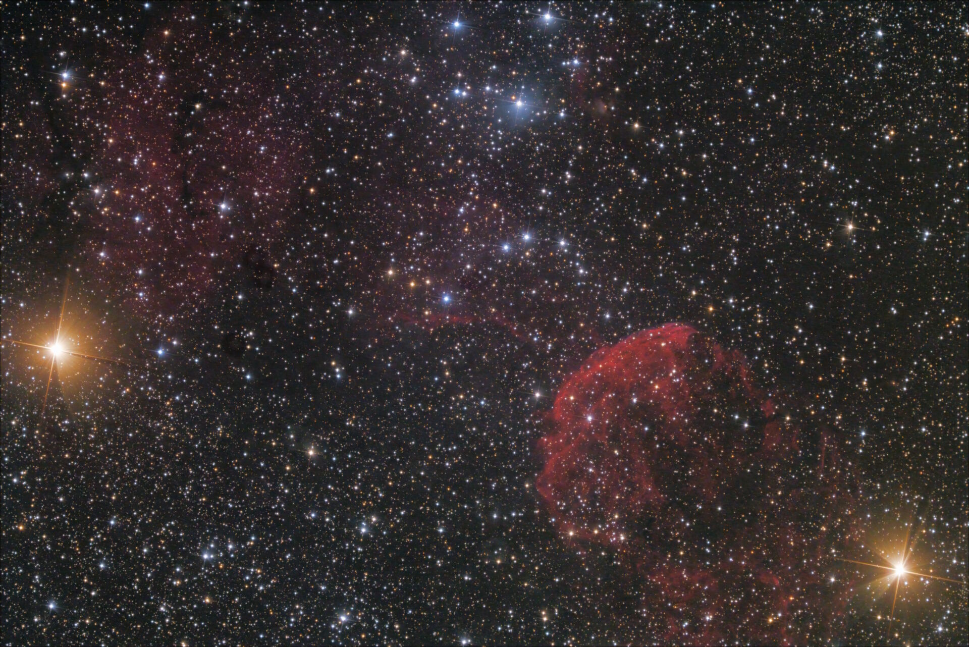 最後はクラゲ星雲。2分x45枚。明け方が近くなってくると雲が出てきて、使えないコマを抜いたらこの枚数でした。頭から立ち上る煙(?)も一緒に入れようとしましたが、画角的にギリギリでせせこましいです。650mmではちょっと長すぎ。