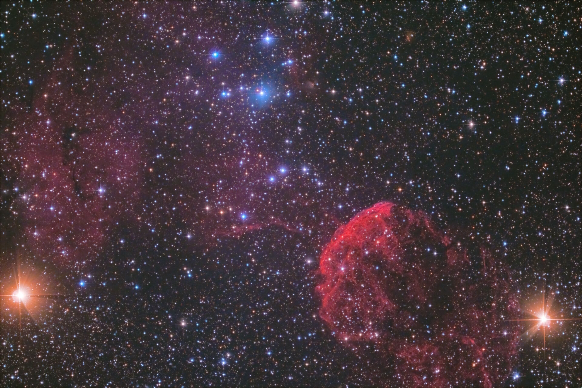 最後はとも座のSh2-305, 306, 307, 309。薄明が始まってしまったので、ちょっと少なめの45枚をスタックしています。