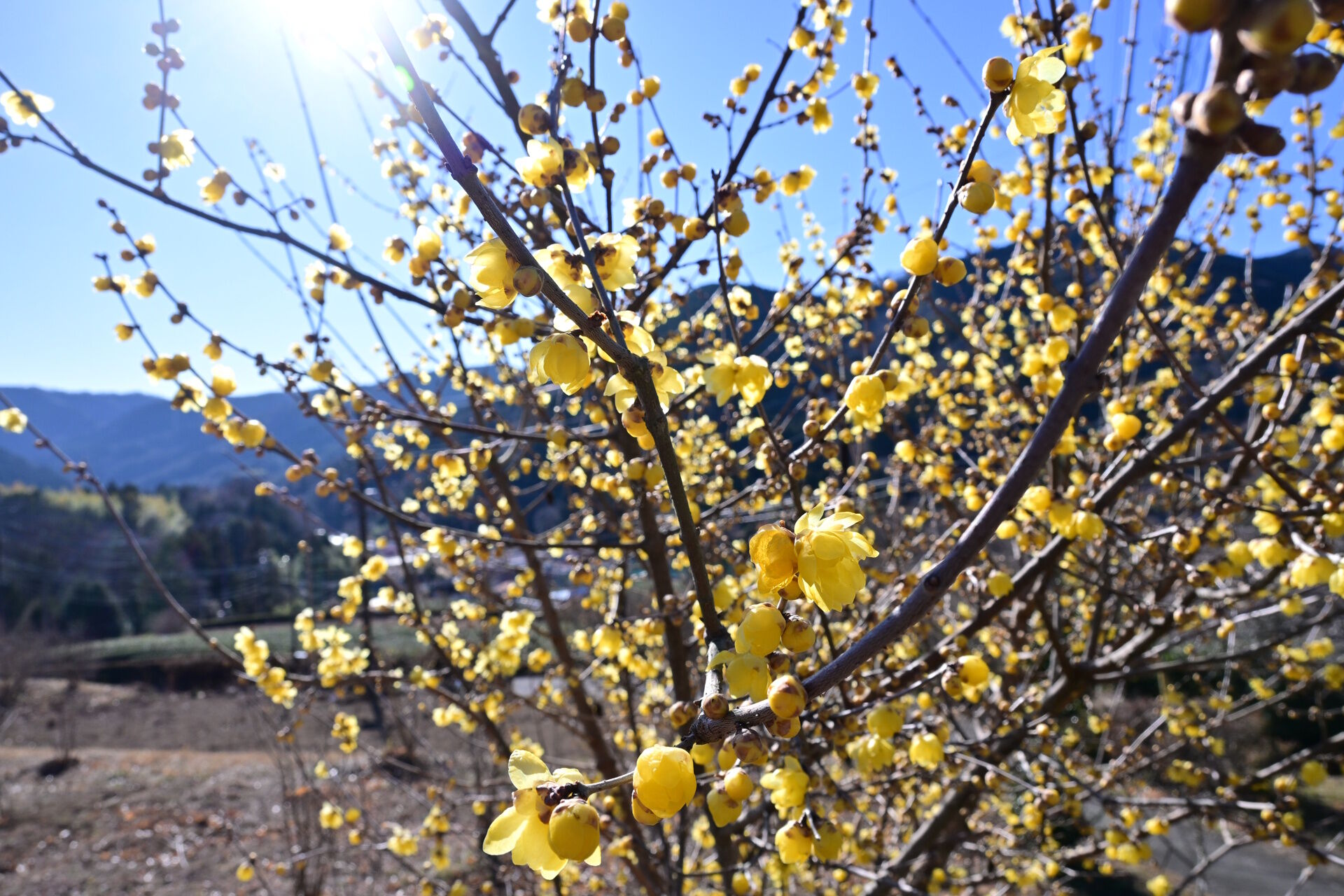 日曜に近所の公園で蝋梅がもう咲いていたので、ふと思い立って松田町寄ロウバイ園に行ってきました。ここは山間の斜面に日本最大級の数の蝋梅が植えられていて、ちょうど今週末から2/15までロウバイまつりが開催されます。