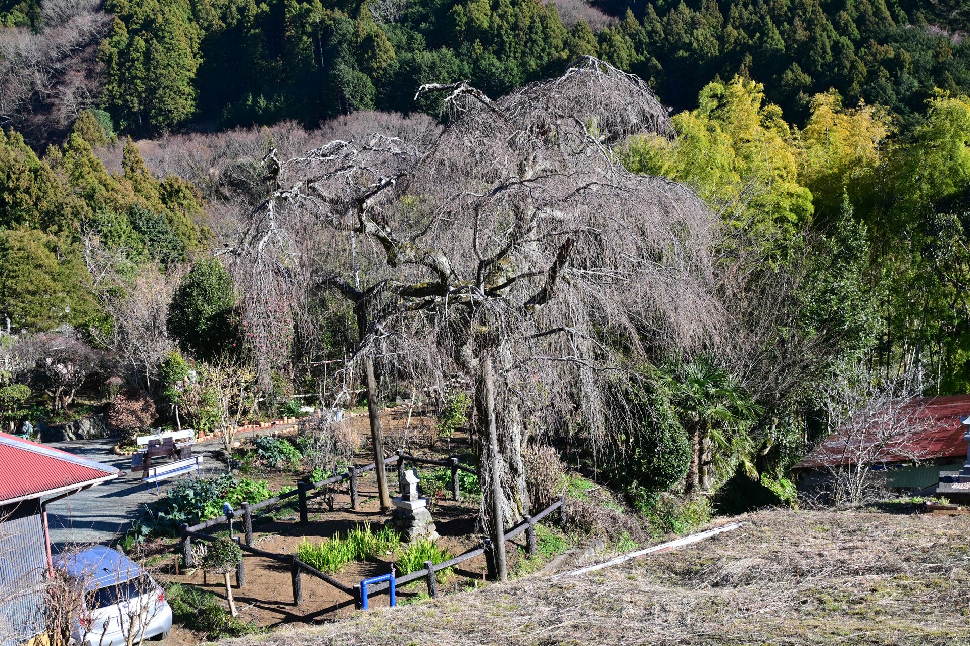 ここにはもう一つ有名な木があります。この土佐原の枝垂れ桜。樹齢250年。