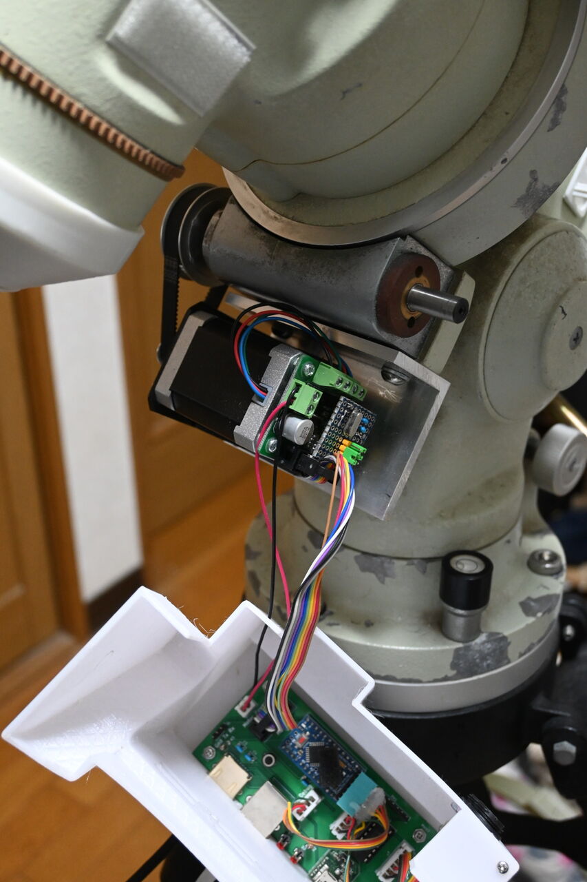 先日の撮影でNJPの自動追尾がとても調子悪くてほったらかしガイドに切り替えましたが、赤経のベルトがゆるくてモータのレスポンスがちゃんと伝わっていないのか、と思い、ベルトを締めてみます。