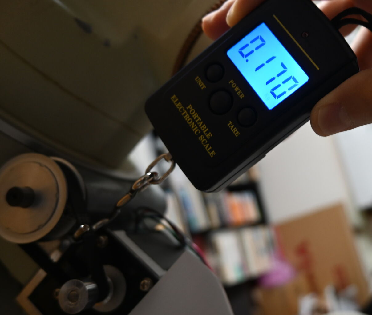 だいぶきつくなりました。が正直どこまできつくすればよいのかわかりません。ミスミのサイトを見ると適切なテンションの計算方法が載っていますが、はかりを持っていないのでたわみ荷重を測れません。なんか代わりのものないかな。