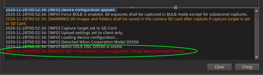 カメラでJPEG+NEFの設定にしてIndiをつなぐとこんなエラーが出ます。